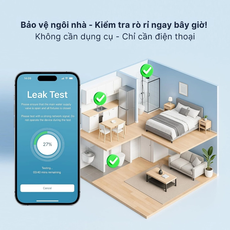 Điểm quan trọng là thiết bị không chỉ phát hiện các sự cố lớn như vỡ đường ống, mà còn nhận biết được những rò rỉ nhỏ thường rất khó phát hiện bằng mắt thường, chẳng hạn như rò bồn cầu, rò ống âm tường, rò đường ống dưới sàn. Những rò rỉ này tuy nhỏ nhưng nếu kéo dài có thể gây lãng phí nước nghiêm trọng và âm thầm làm hư hỏng kết cấu nhà.